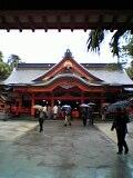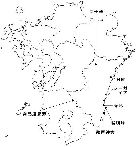 3日目。阿蘇のホテルを出発した我々は、まずは高千穂に向かいました。この高千穂というのは宮崎県北部にあるのですが、「古事記」や「日本書紀」における神々が降り立ったとされる場所として有名です。それを裏付けるかのようにこの一帯には天香久山・高天原・天の岩戸などがございます(ホントは神話というのは架空のお話ですよ)。その中で我々が行ったのは高千穂峡でございます。 ではこの高千穂峡についてちょっとご説明しておきましょう。ここももともとは阿蘇の噴火によって流れ出た溶岩が固まってできたところなんですが、ここを流れる五ヶ瀬川が浸食して渓谷を形成したんです。特に右下の写メはご覧になったことがある方も多いと思いますが、真名井の滝といってテレビや雑誌などでよく紹介されるところでございます。そしてこの渓谷の奥にはおのころ池(右下の写メ)というものがございまして、その中心にはおのころ島というものがございます。これは「イザナギ・イザナミという神様が地上界に降りてきて、鉾で大海原をかき混ぜたそうな。で、その鉾を引き上げた時に鉾先に水滴が付いていて、それがぽとりと落ちておのころ島ができた。これがのちに淡路島になった」という神話がございまして、これをもとに作られた(?)もののようです。 そうそう、で1つお断りしておきますが、鹿児島県の霧島にも高千穂という地名がありまして、ごちゃごちゃになりやすいので注意が必要ですね。で、霧島の方には「天の逆鉾」といって、ニニギノミコトが降臨の際に逆さまに突き刺したという鉾がございます。当然のことながら神様の鉾ですから触っちゃいけないのですが、幕末にここに新婚旅行に訪れた坂本龍馬は抜いちゃったそうです。 さて、高千穂峡を後にした我々は一路日南海岸を目指して出発致しました。で、山の中から海岸沿いまで行くわけですから、とにかく長い。今日は移動時間がほとんどですね。 そうこうしているうちに日向市に到着致しました。この日向市というのはハマグリが取れることで有名なところなんですが、ここにはこういう伝説がございます。 昔々、この日向の海岸に1人のお腹をすかせた修行僧がやってきたそうな。するとそこにお金という女の子がいてハマグリを捕っていたそうな。そのお坊さんは近づいていきこう言ったそうな。「ハマグリを分けて頂けませんか?」と。するとお金はこう言ったそうな。「これは石ですよ」と。仕方がないのでお坊さんは次の砂浜に向かったそうな。するとそこにはお倉という女の子がいたそうな。お坊さんは今度も「ハマグリを分けて頂けませんか?」と聞いたそうな。するとお倉は「はい、どうぞ」と言って自分が捕ったハマグリを分けてあげたそうな。するとあら不思議、それ以来、お金の砂浜からは全くハマグリが捕れなくなってしまい、一方でお倉の砂浜からはハマグリがじゃんじゃん捕れるようになったそうな。で、このお坊さんは誰かと申しますと、なんと!あの弘法大師様だったというオチが付いているのであります。ちなみに現在では前者を金ガ浜、後者をお倉ヶ浜と呼んでいるそうでございます。 さて、そうこうしているうちにバスは国道10号線を南下し宮崎市内に入って参りました。右手には先年、経営破綻致しました宮崎シーガイアが、さらに先へ進むと左手には長嶋前巨人軍監督が命名したことで有名なサンマリンスタジアムが見えて参りました。そしてこのサンマリンスタジアムの先をひょいっと左折したところに青島がございます。 では、この青島についてちょっとご説明を。ここは日南海岸国定公園の北端にある島なんですが、島といっても満潮の時だけで、干潮の時には陸続きになるそうです。いちおう現在では橋が架かっているので潮の満ち引きは関係ないのですが、かつては満潮になる前に陸に戻ってこなければならなかったので、ツアーのガイドさんなどは大変だったそうです。 そしてこの橋を渡っていると両脇に見えてくるのが鬼の洗濯板でございます。これは水成岩と呼ばれる岩が波によって浸食されてできたもので、ご覧のようにギザギザな形がいかにも洗濯板っぽいわけでございます。 さて、この鬼の洗濯板を両手に見ながら橋を渡りきるとそこには青島神社がございます。こちらは山幸彦とその妻豊玉姫を祀っているのですが、ではここでその話を。 昔々、この辺りには海幸彦と山幸彦という兄弟の神様がおられたそうな。海幸彦は海で魚を捕るのが仕事で、山幸彦は山で猟をするのが仕事だったそうな。ところがある日、山幸彦は釣りをやりたくなって海幸彦にお願いして1日だけ仕事を代わってもらったそうな。ところが、慣れないことはするものではなく、兄の大事にしていた釣り針を魚に飲み込まれてなくしてしまったそうな。するとその話を聞いた海幸彦は激怒し、何が何でも取り戻してこいと言う。困った山幸彦は海辺で途方に暮れていたそうな。するとそこへ1人の老人が現